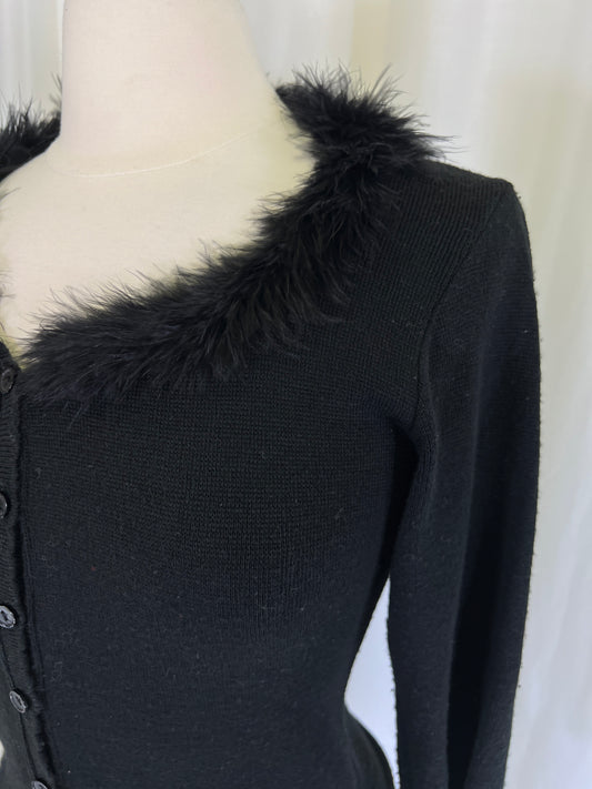 90s Smooches Feather Trimmed Black CardiganRegular price $45.00 USDRegular priceUnit price per-
