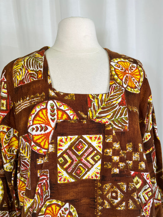 1960's Terrible Herm Original Brown & Orange Hawaiian Blouse