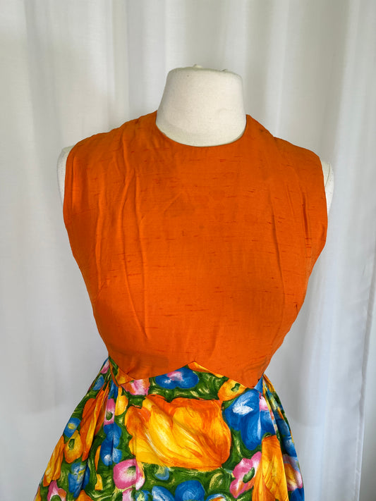 1960's Bonwit Teller Orange & Floral Psychedelic Mini Dress