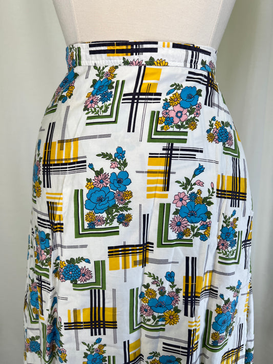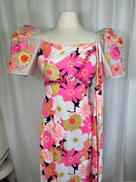 1960's Hawaiian Print High Neck Floral Maxi Dress