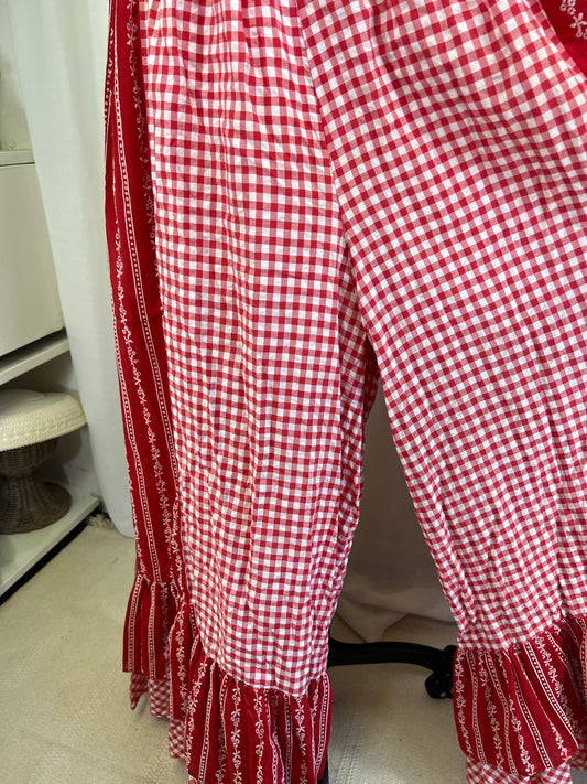 1970's Gingham Ultra Wide Leg Ruffled Palazzo Pants
