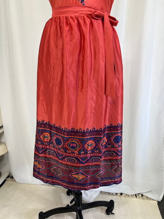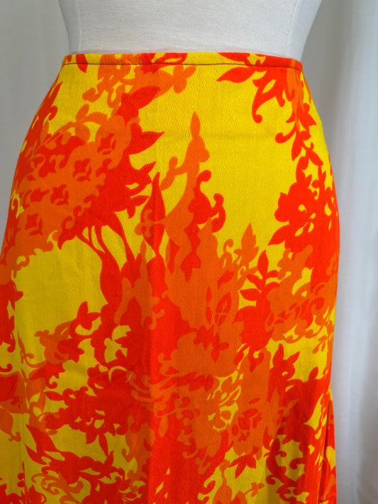 1970's Orange & Yellow Hawaiian Maxi Skirt