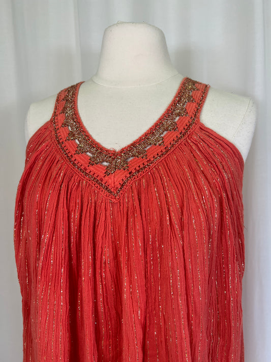 1970's Orange Cotton Gauze & Gold Lurex Dress
