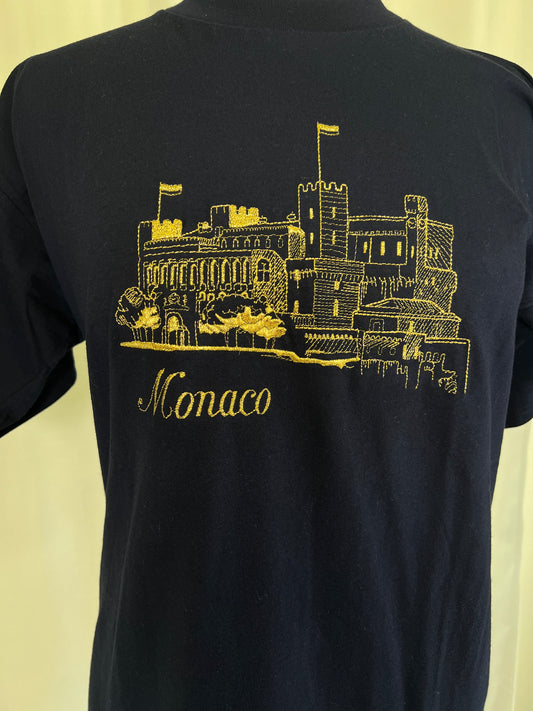 1990's Gold Embroidered Monaco Navy Tee