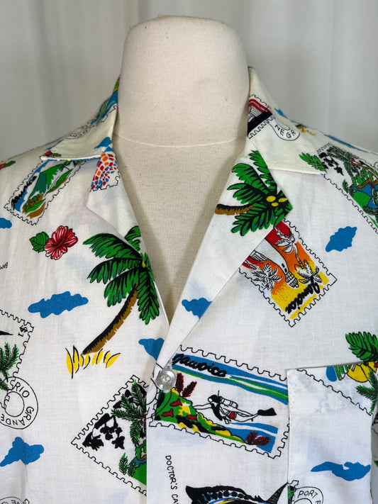 1990's Post Stamp Pattern Aloha Shirt