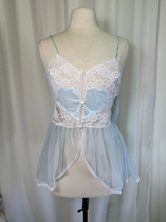1980's Baby Blue & Lace Bonne Nuit Lingerie Set