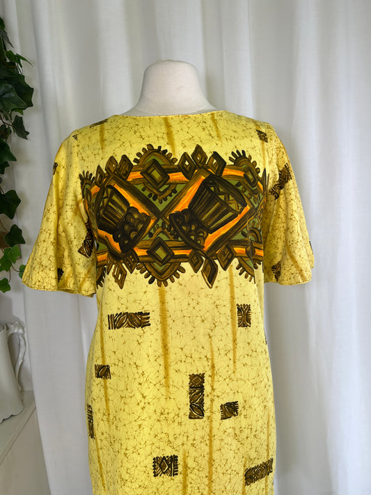 60s Yellow Reef Hawaiian Print Mini Dress