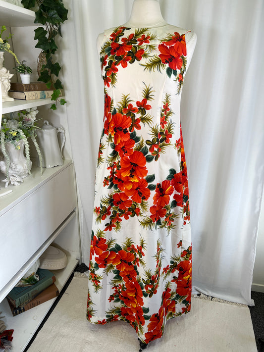60s Darina Hawaiian Print Train Back Maxi Dress