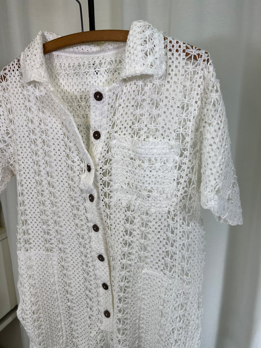 70s Aryeh Alpaca Blend Tan Crochet Dress