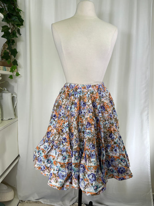 90s Square Dancing Flowers and Butterflies Western Circle Skirt