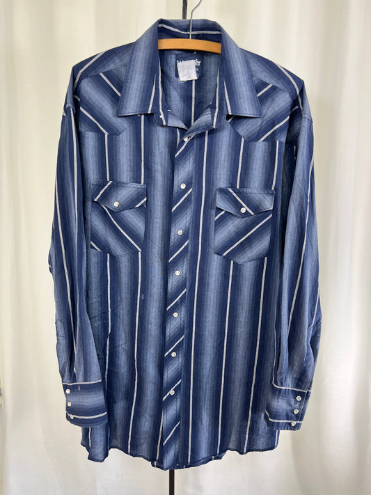 80s Wrangler Blue Striped Pearl Snap Shirt