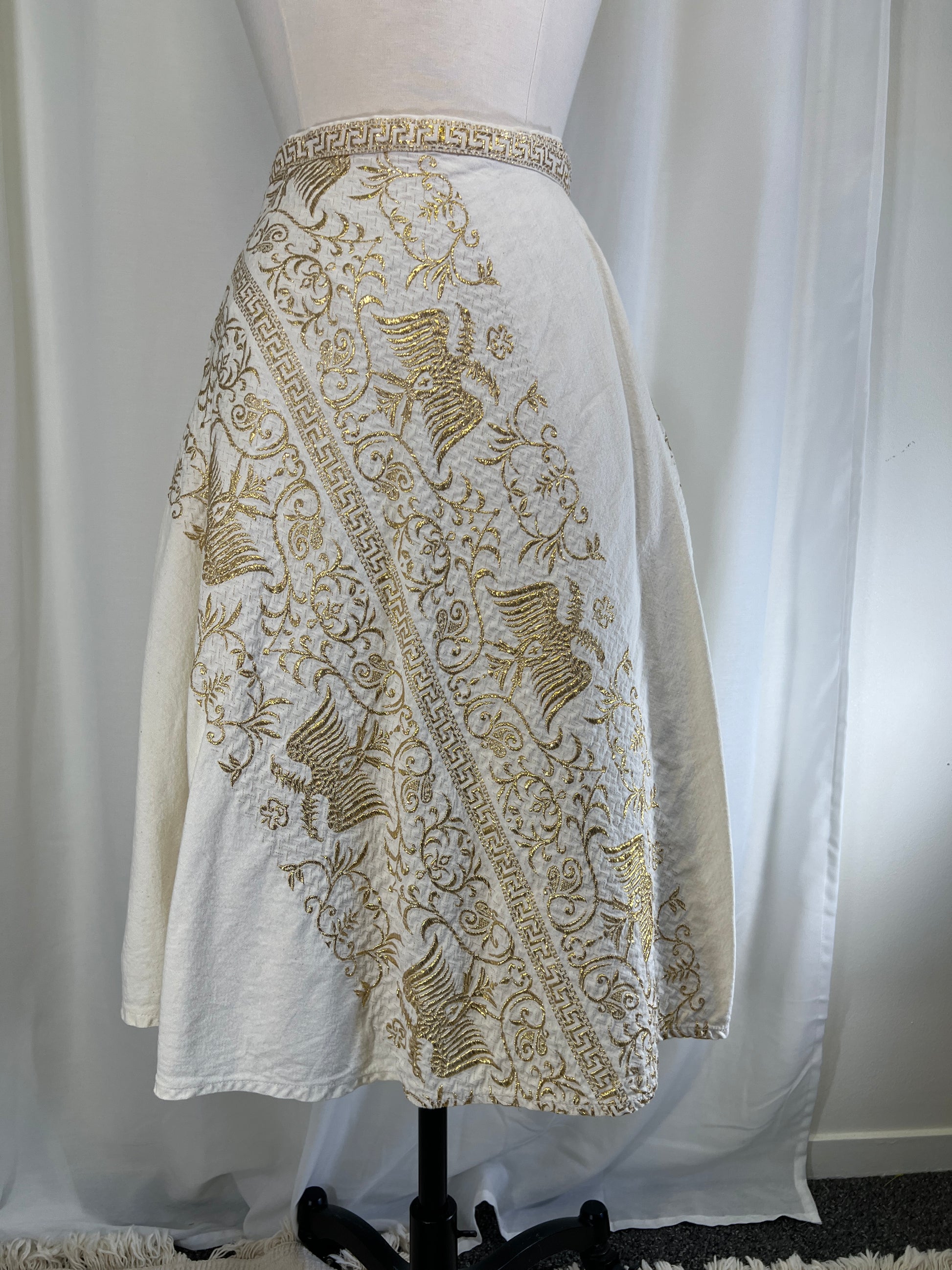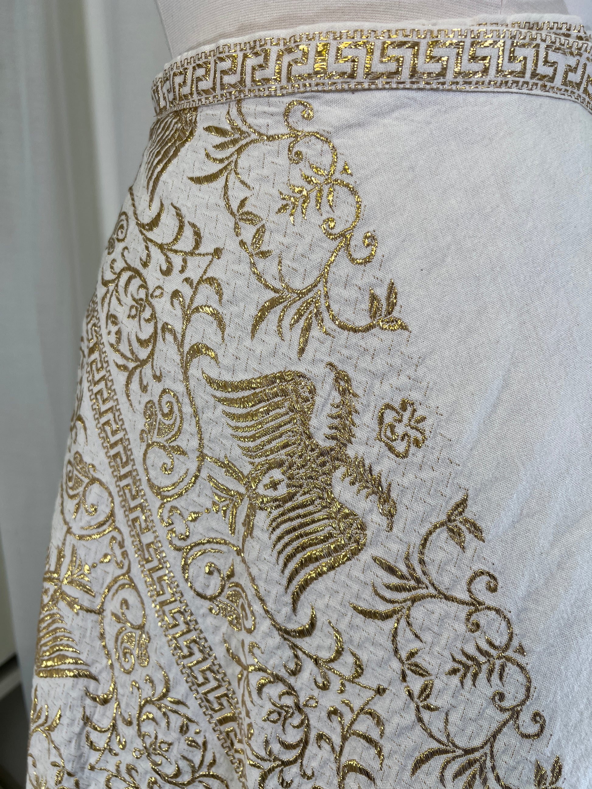 70s Greek Gold Lamé Patterned Wrap Skirt