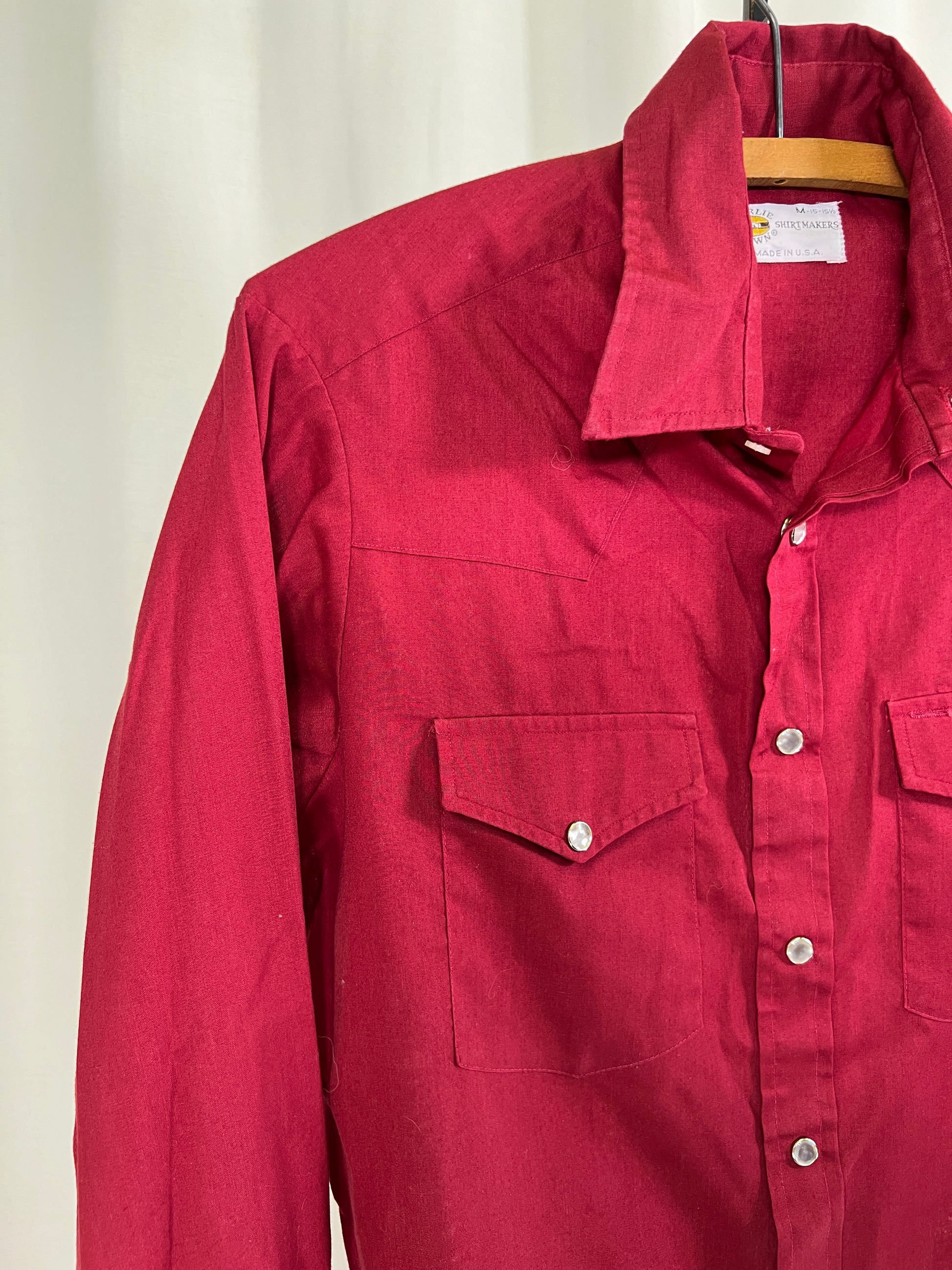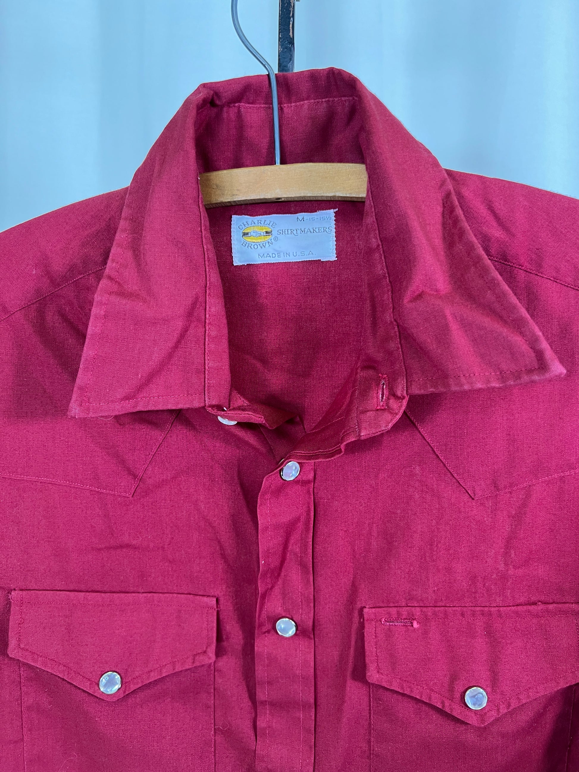 70s Maroon Charlie Brown Shirtmakers Pearl Snap Western Shirt