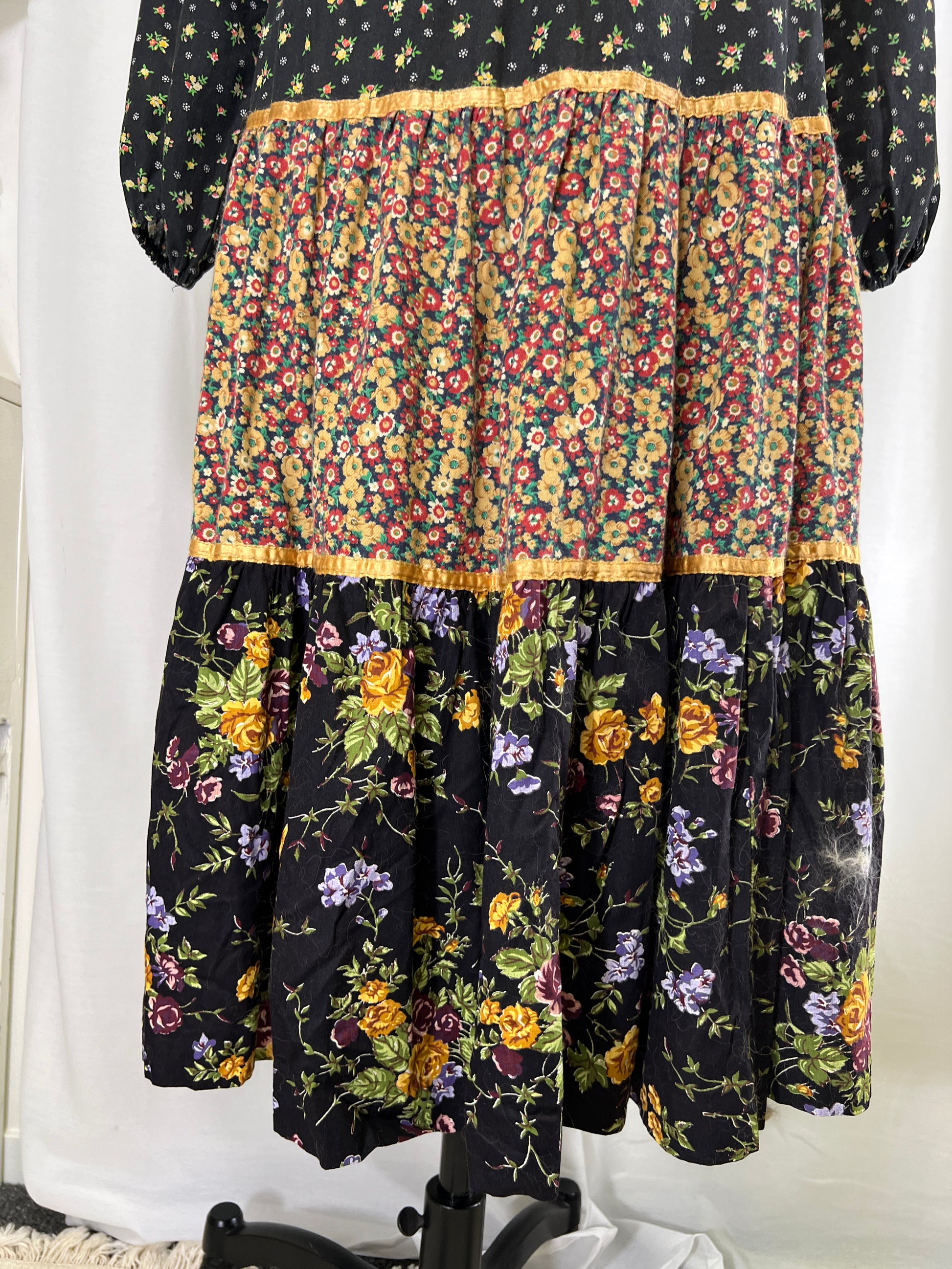 70s Young Edwardian Ditzy Floral Pattern Mixed Midi Dress