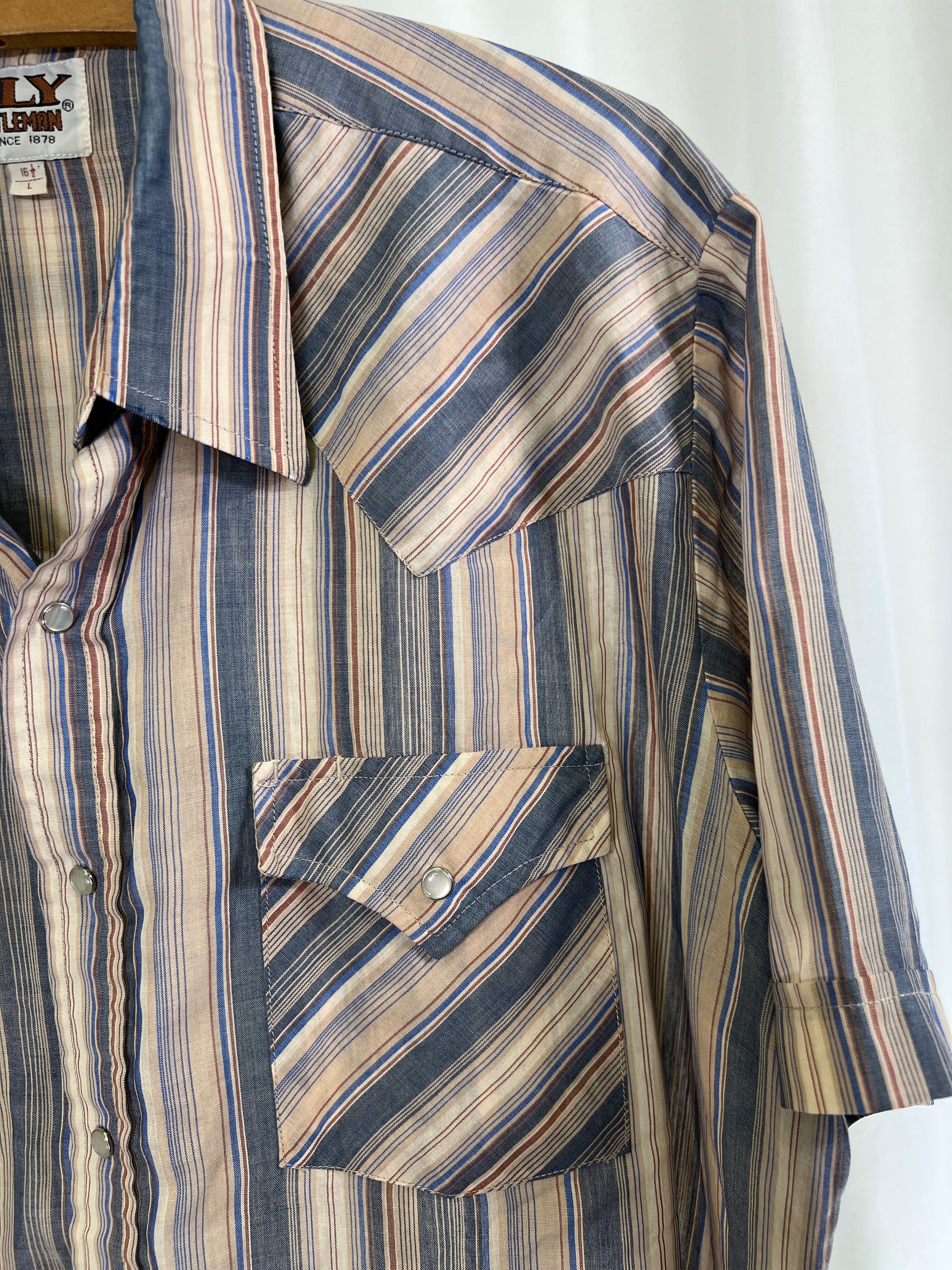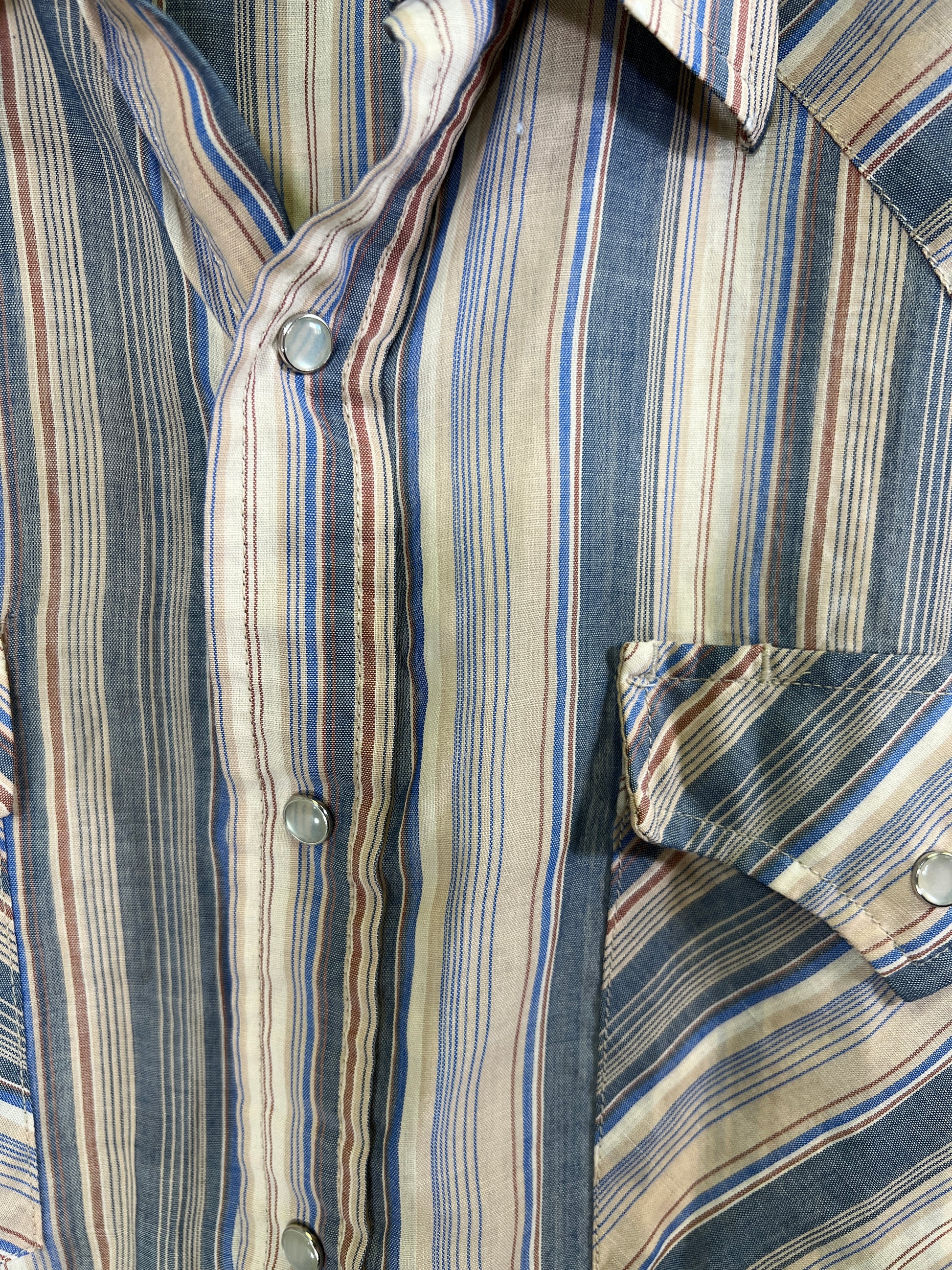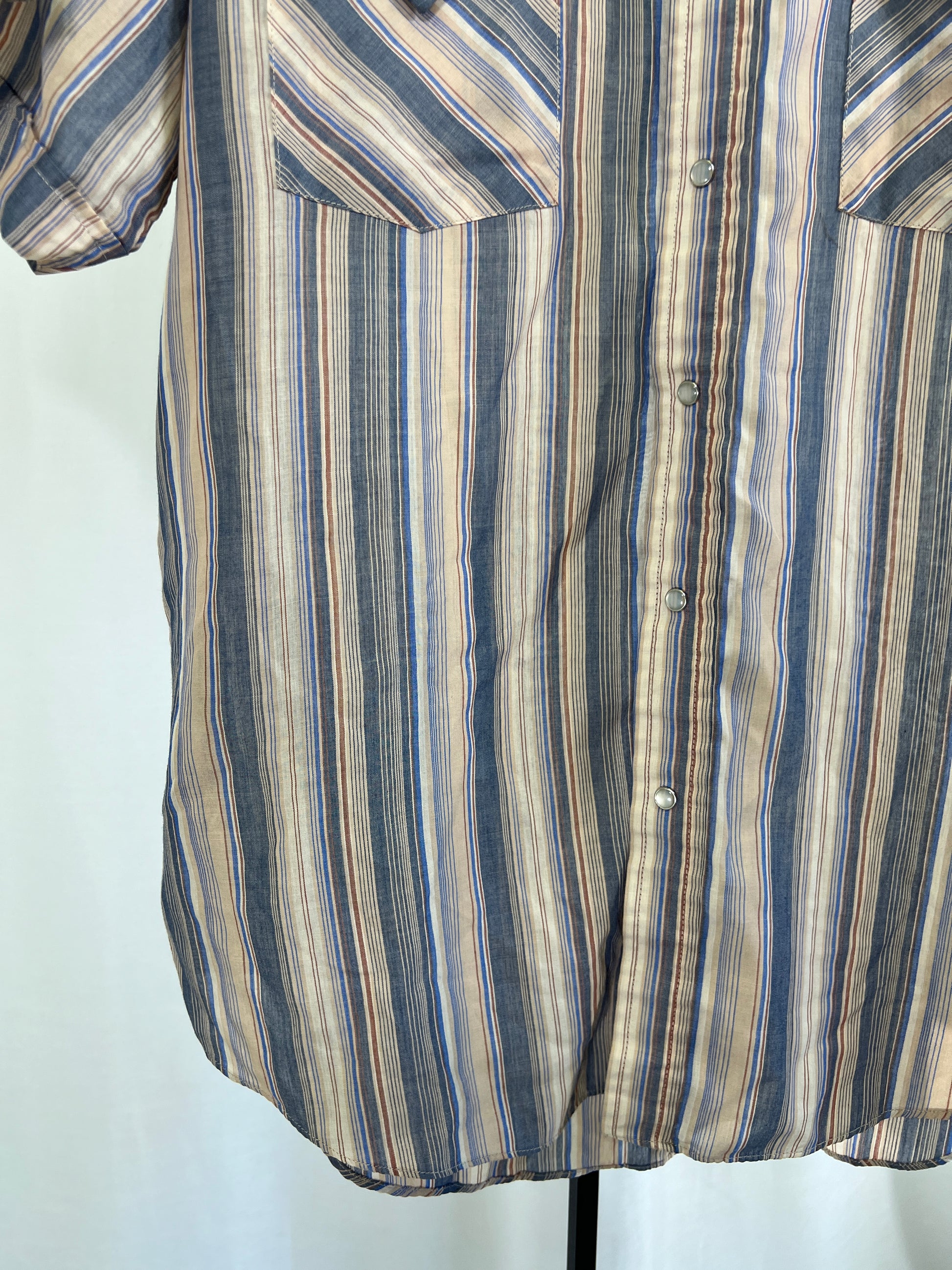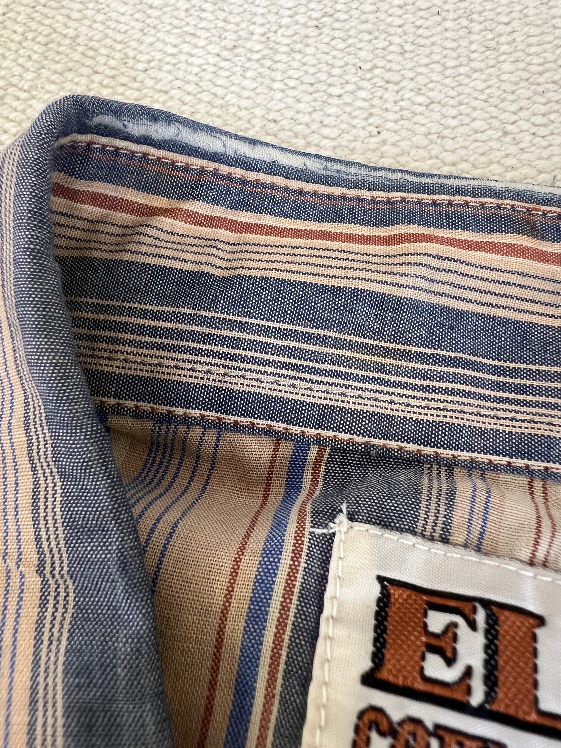 80s Ely Cattleman Brown and Blue Striped Pearl Snap Western Shirt