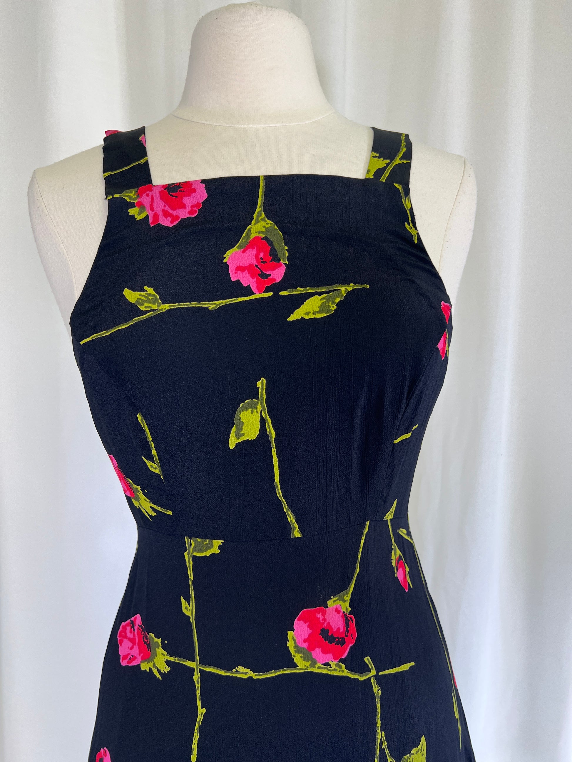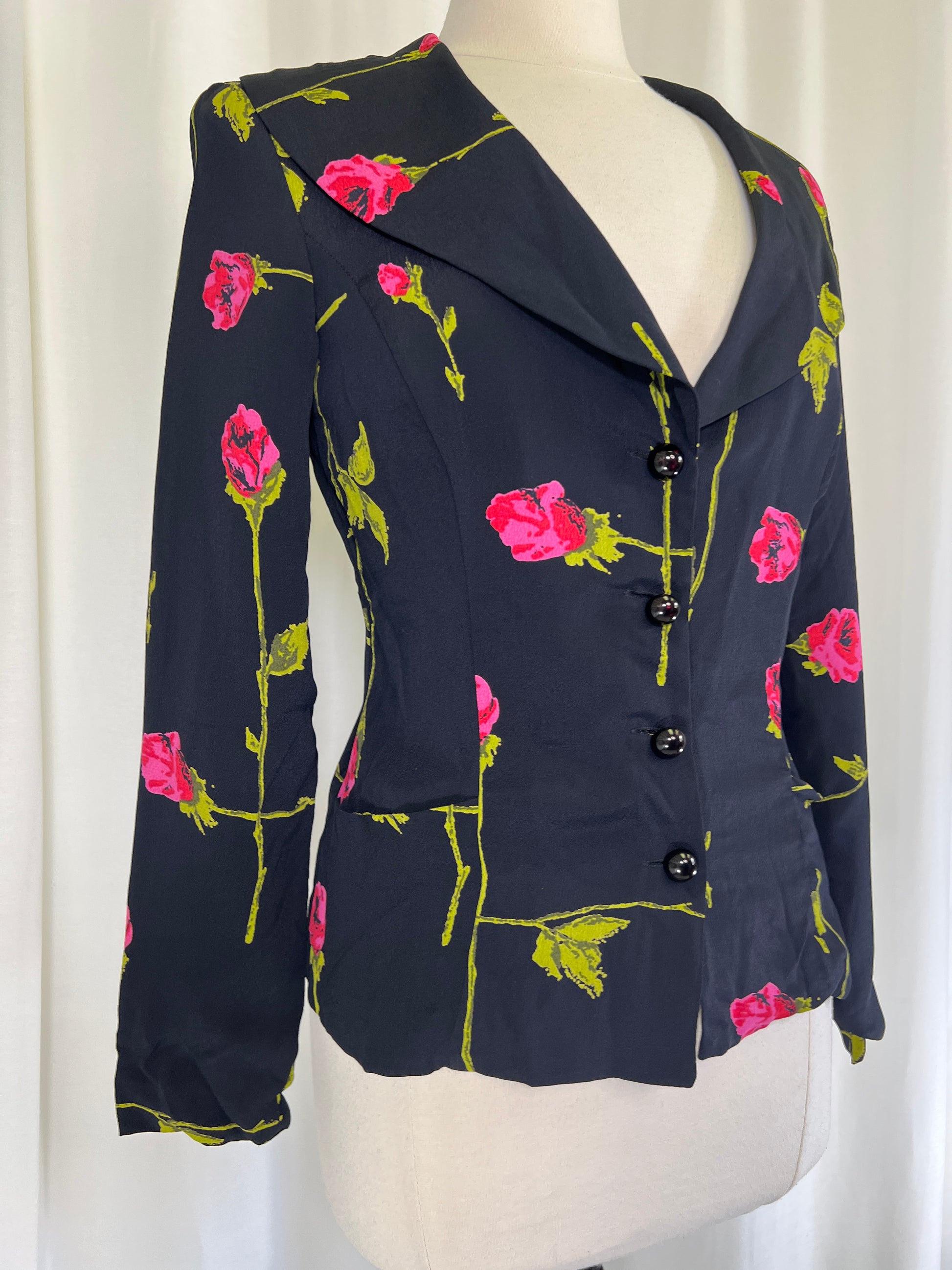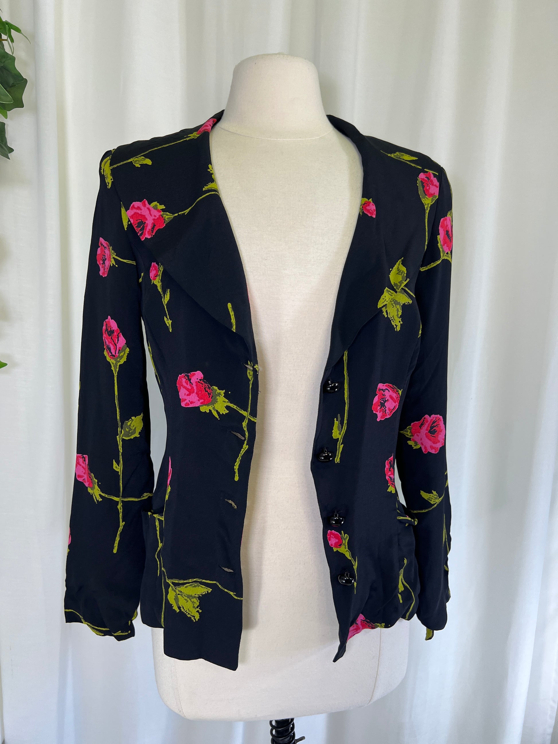 Are you ready for your rom com heroine moment? This Betsey Johnson set is covered in long stem roses and screams 90s romance! Wear them together with some kitten heels, or mix and match with your wardrobe! The dress is perfect on its own and the Jacket looks so chic with jeans and heels! The dress is marked a size 6 on the tag and the jacket a size 8.