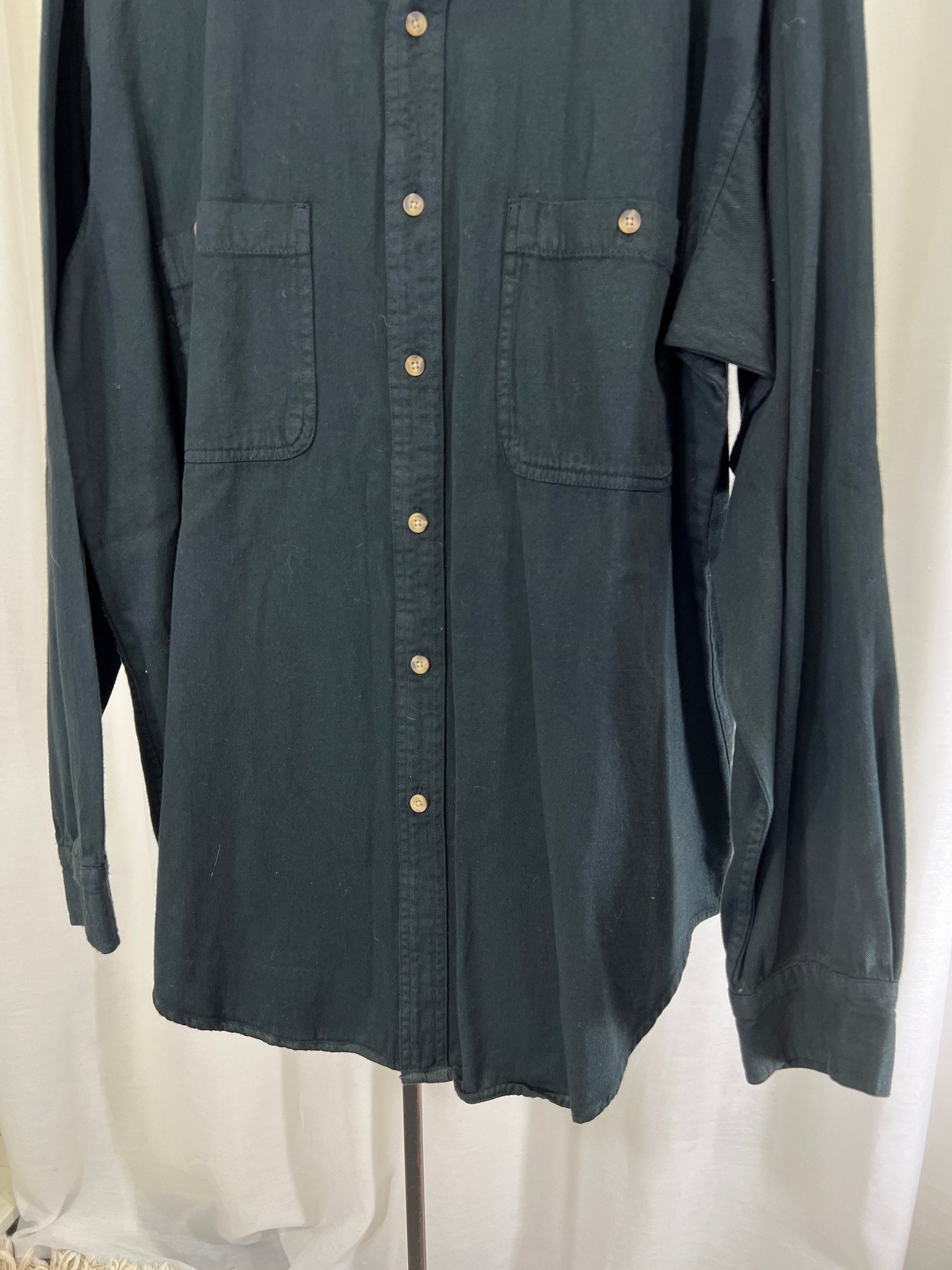 This shirt is such a lovely thick cotton. So perfect worn over your favorite tee shirts, or buttoned up over chinos for a preppy retro vibe! The deep green color is so versatile in your wardrobe!
