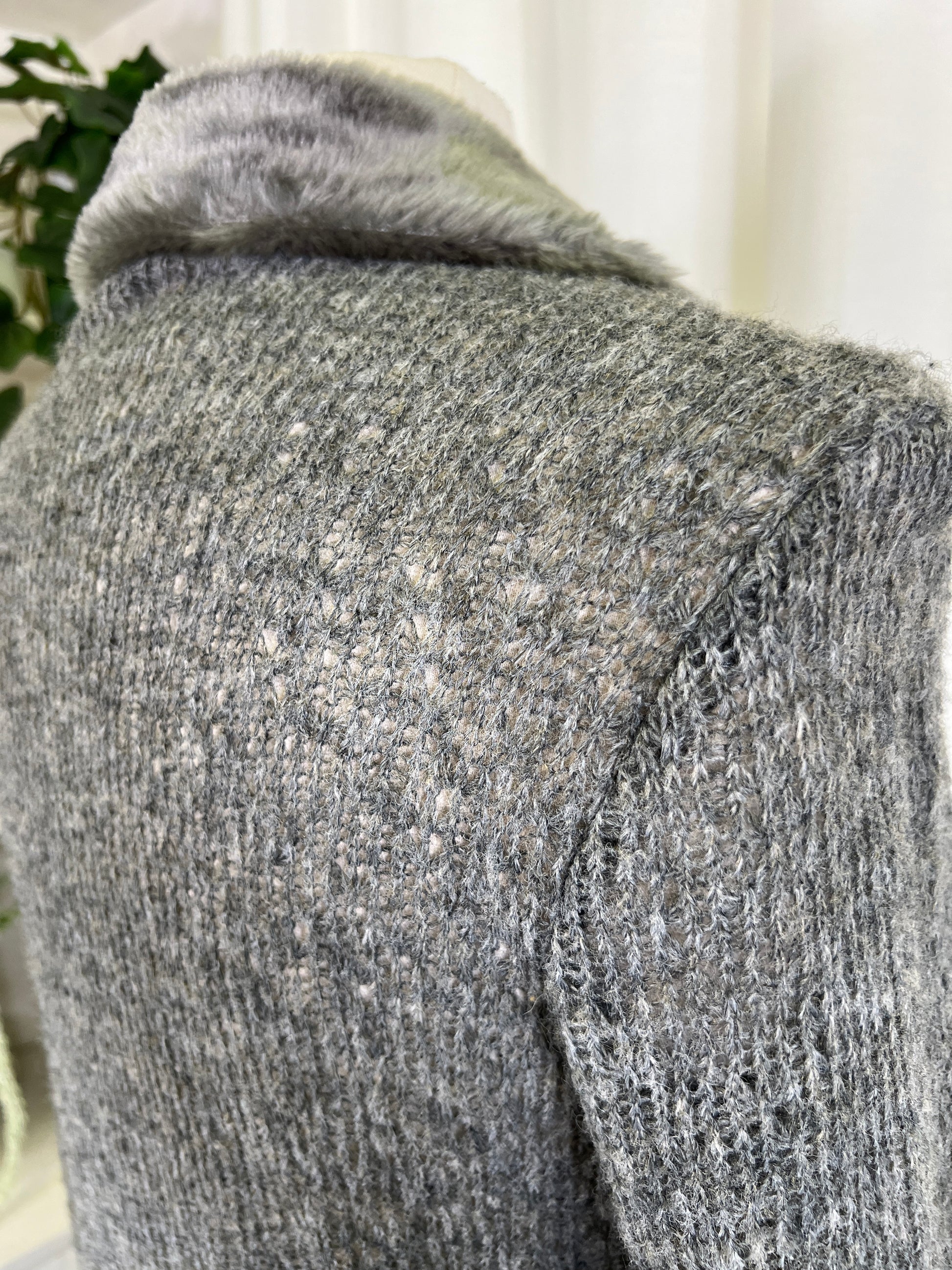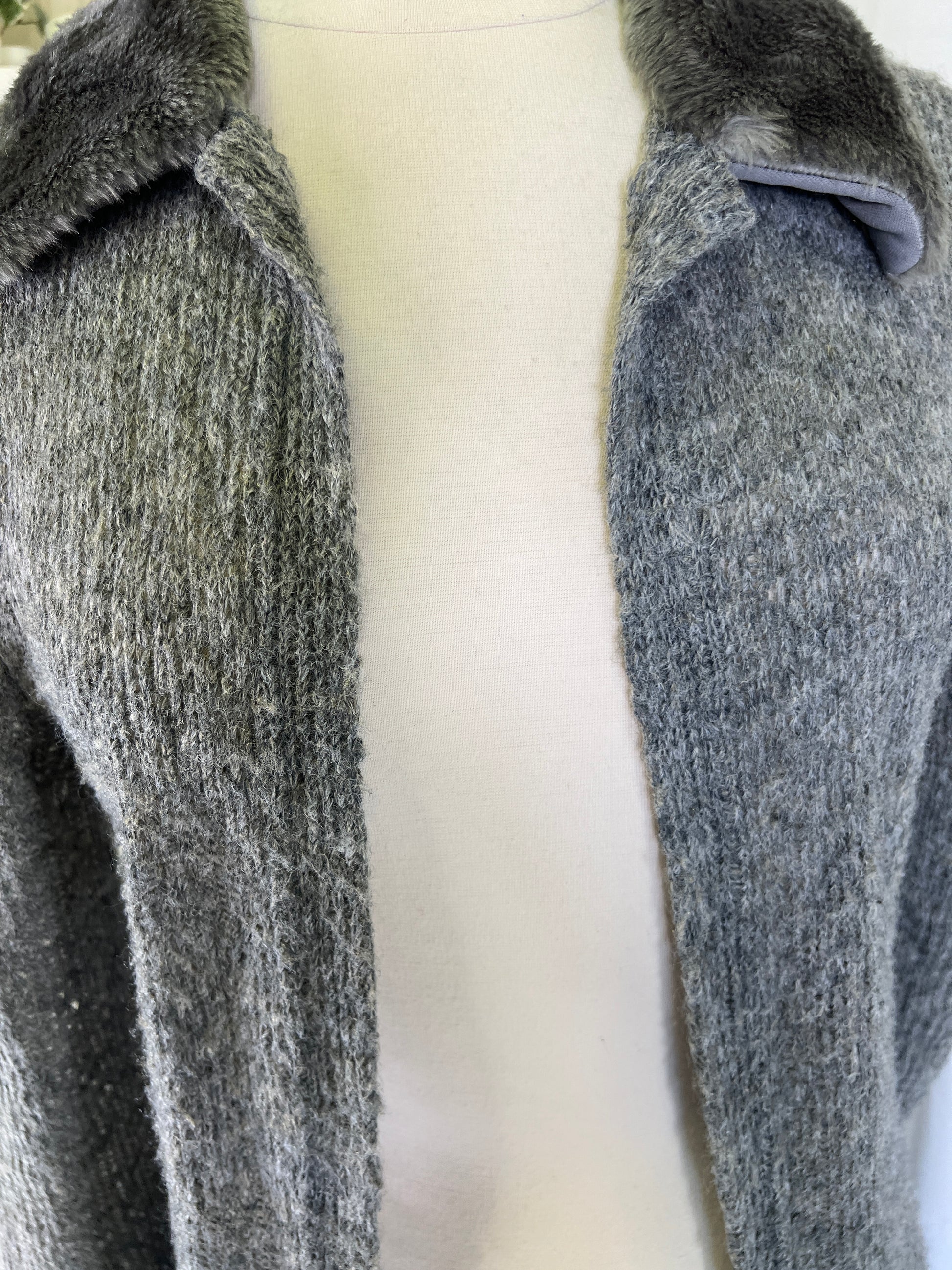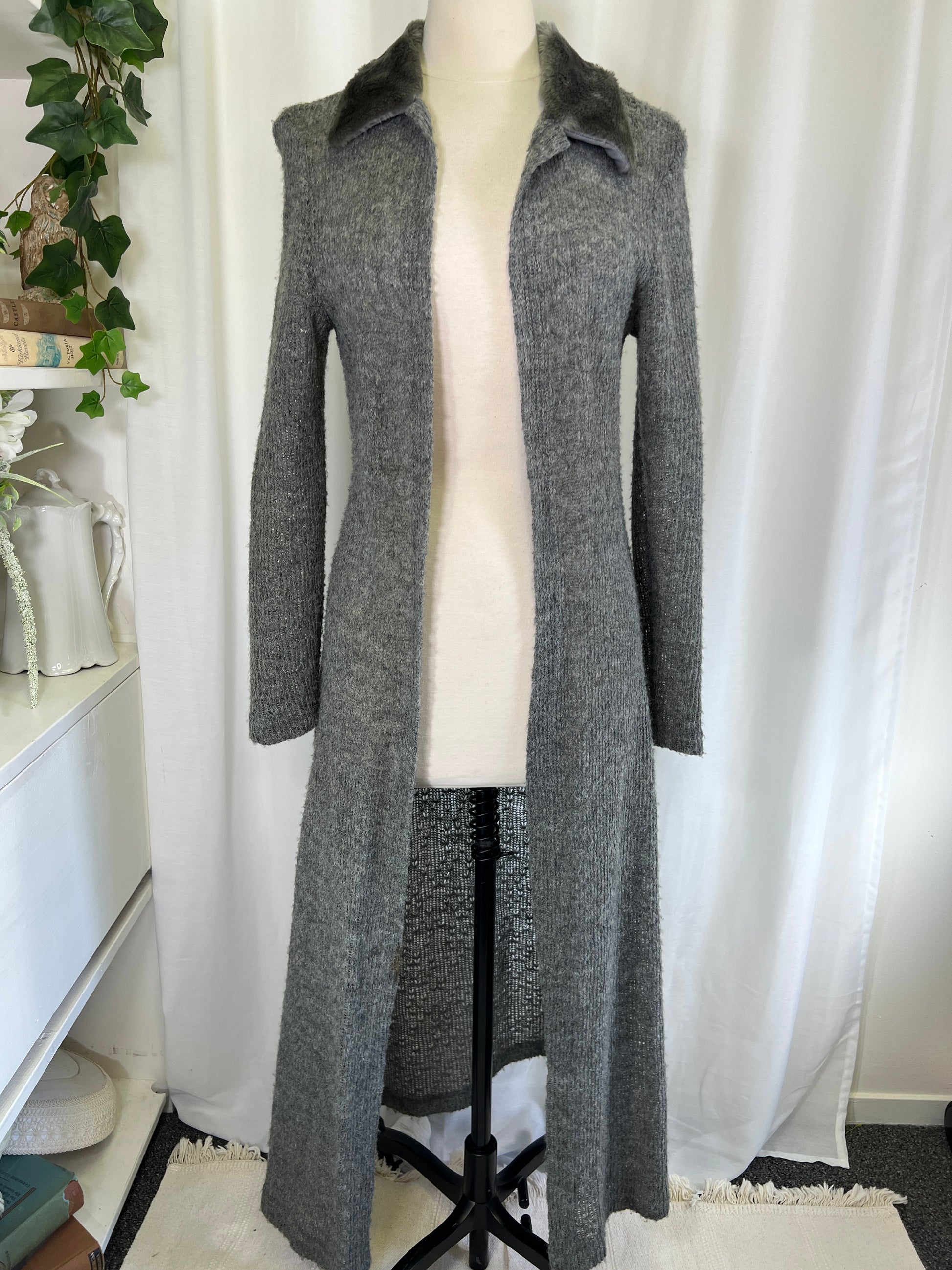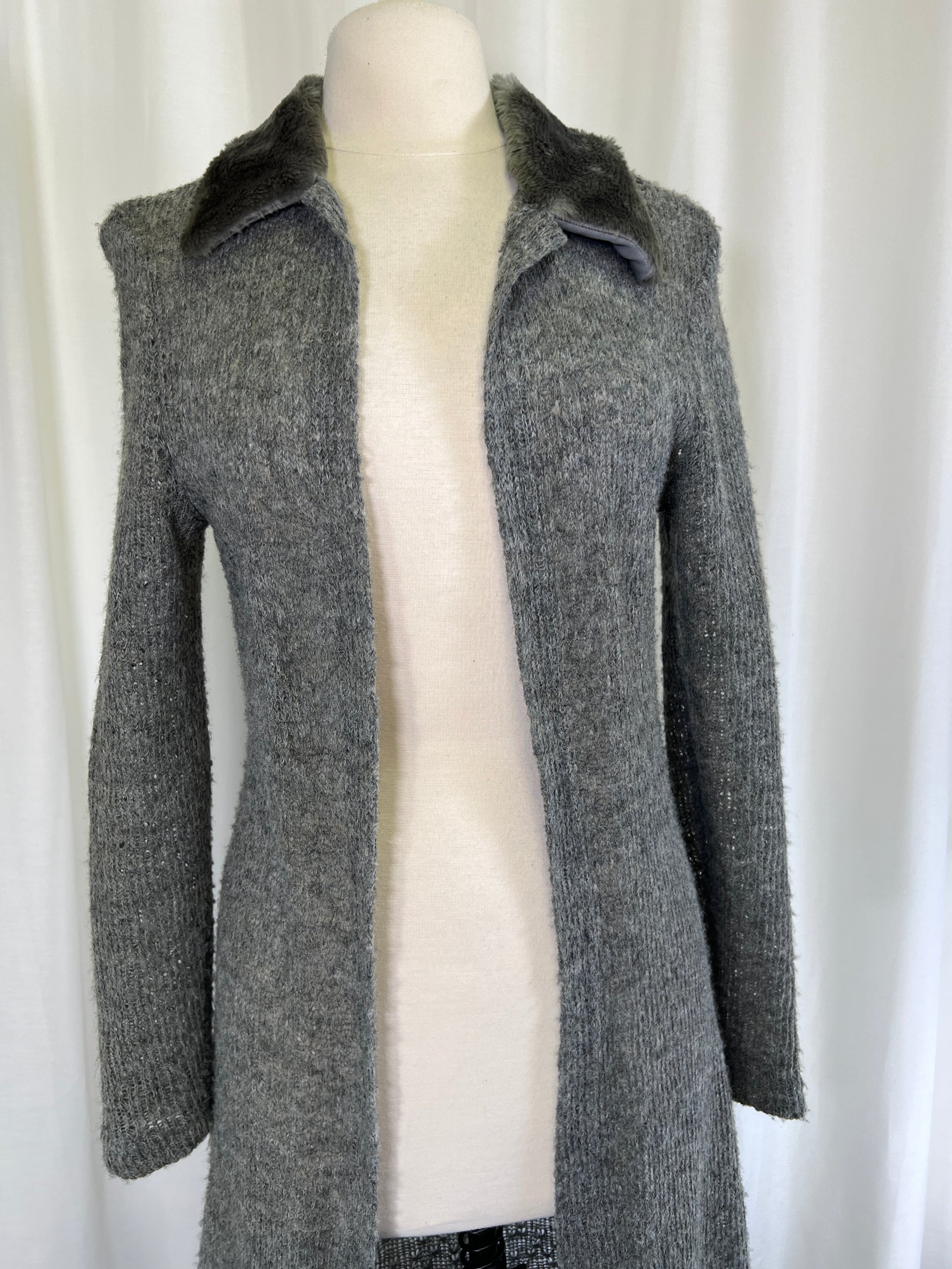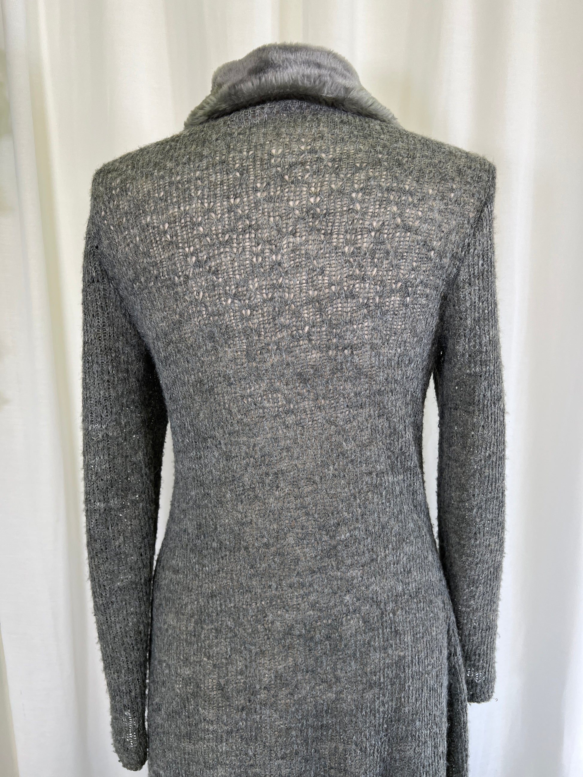 90s Eyeshadow Fur Trimmed Knit Maxi Length Duster Jacket