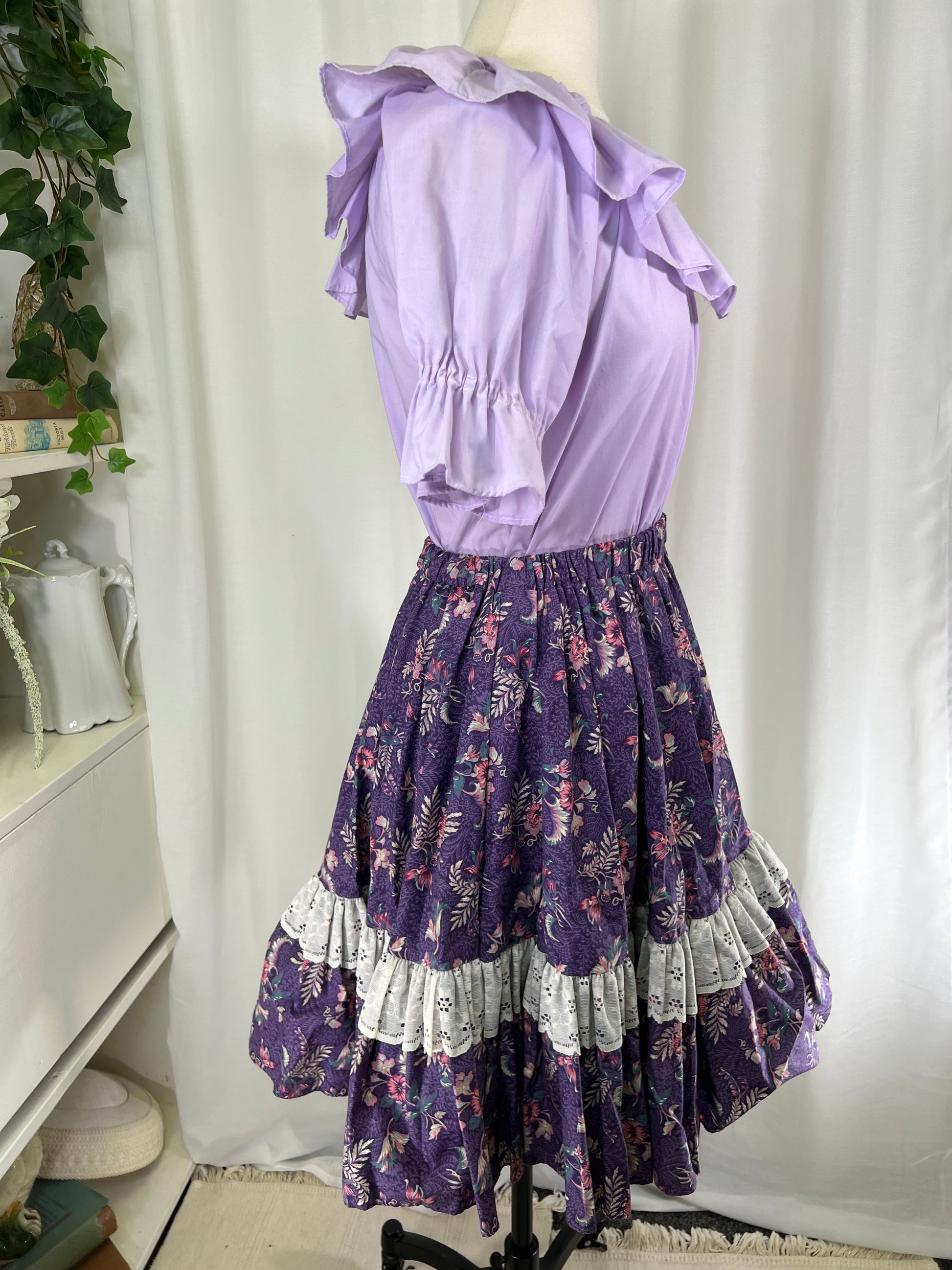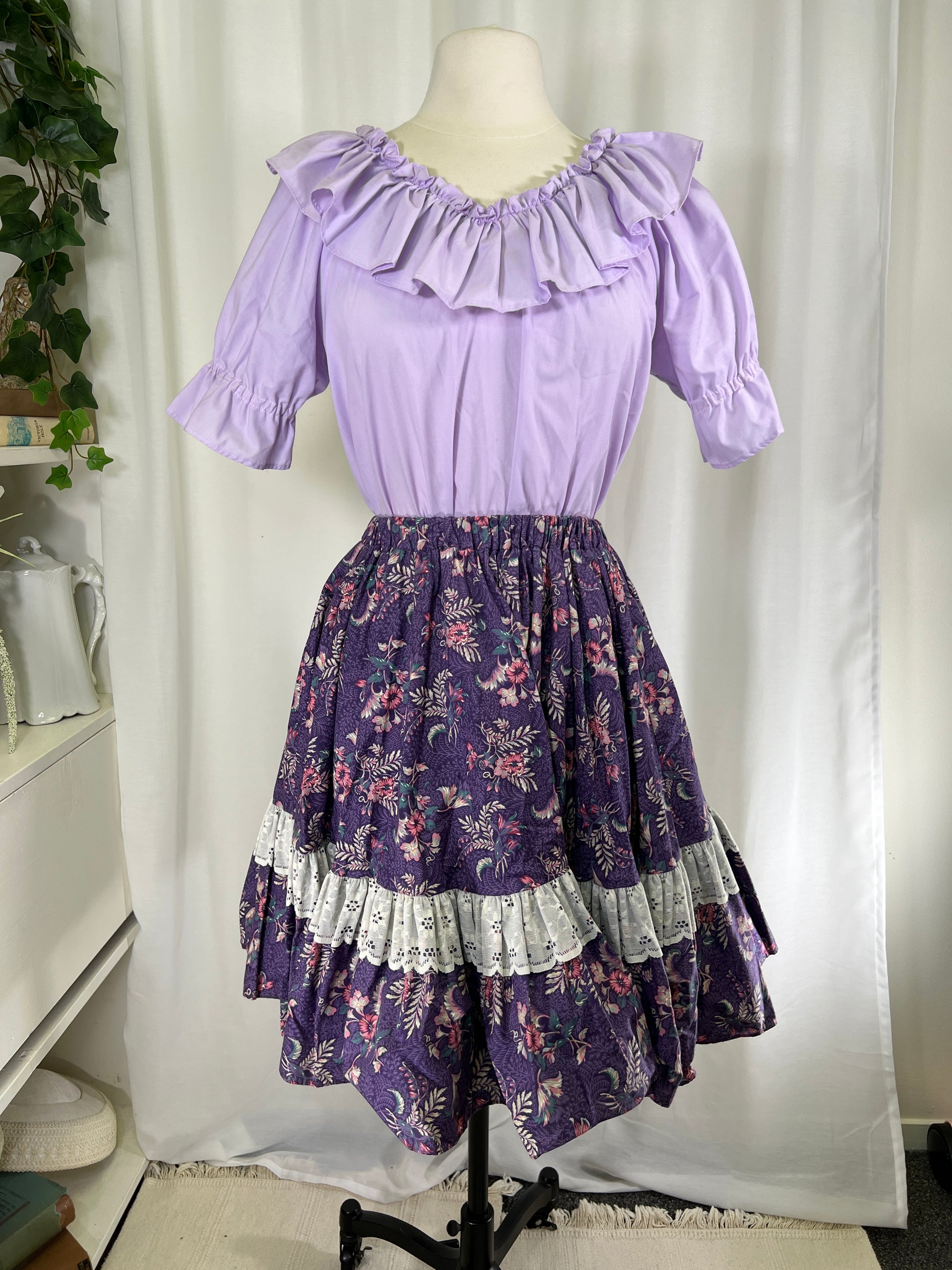 This absolutely darling set is a marriage of pieces from two different square dancing brands, but they match so well! So perfect for square dancing, a western party, or just any ol' day! The blouse is from Carol's Country Creations and the blouse is from The American Square Dance Company!