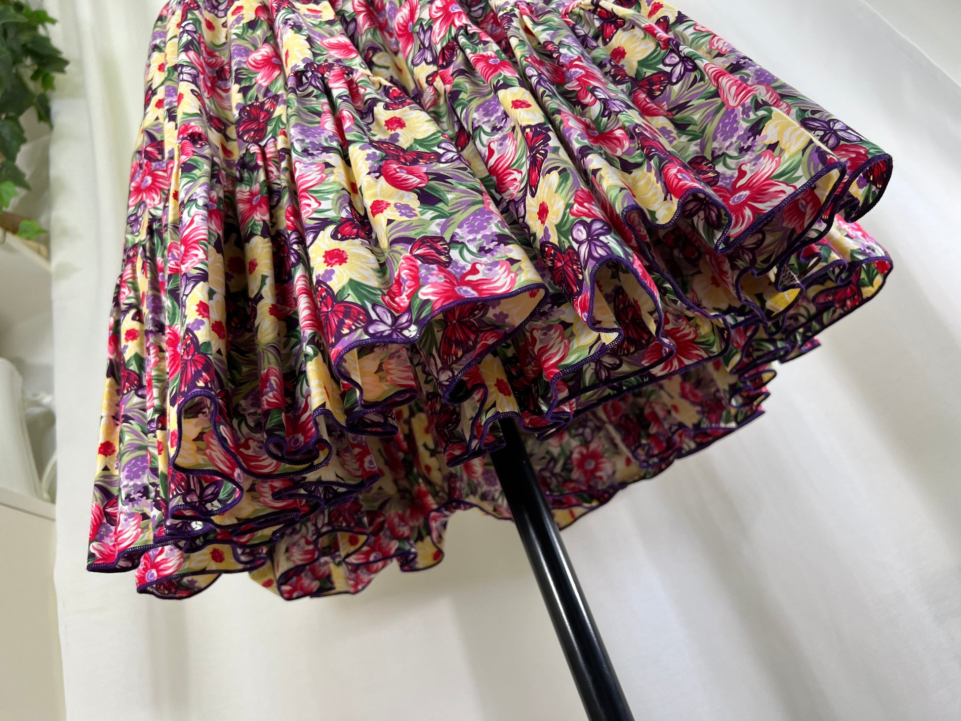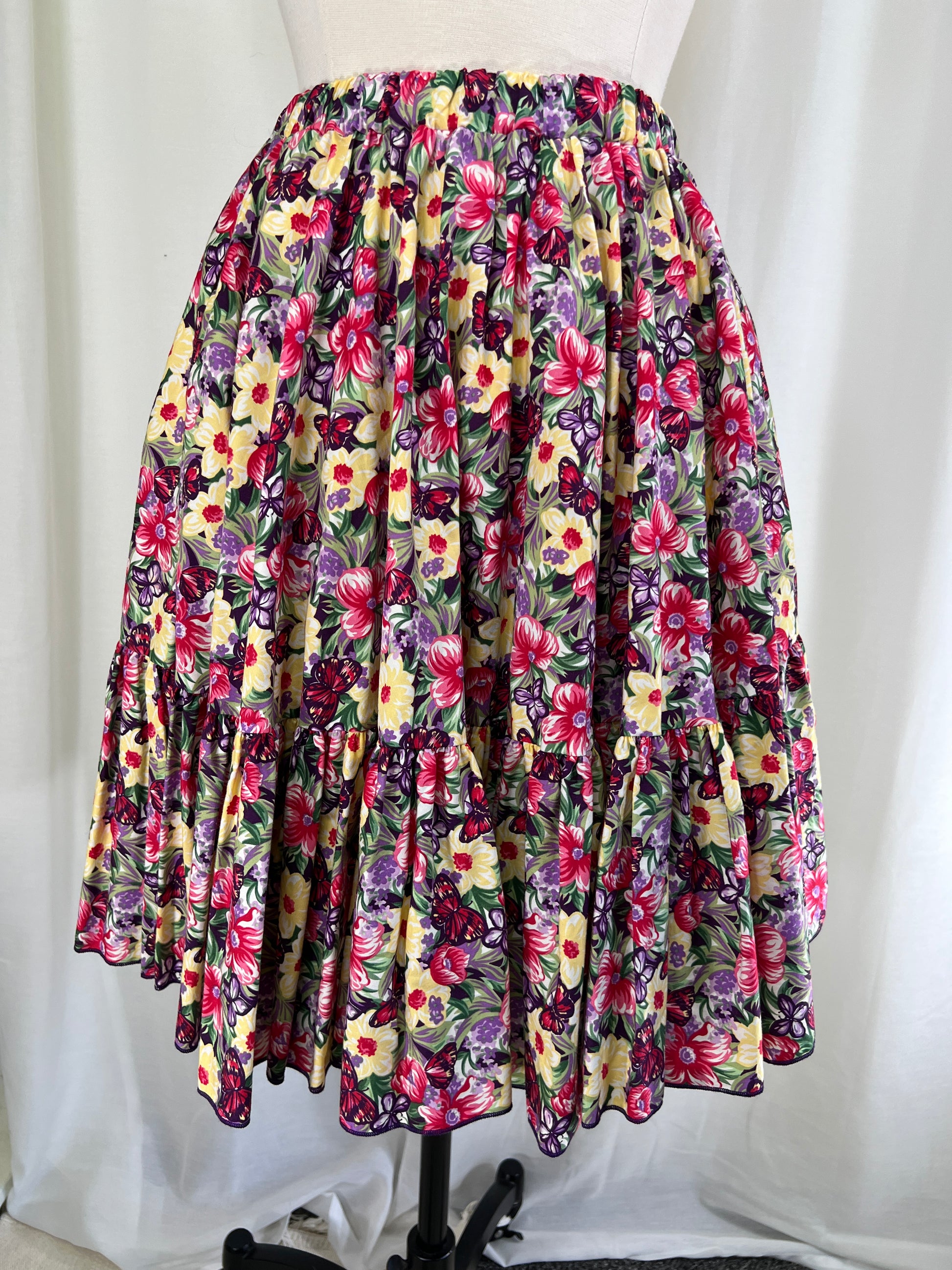 90s Square Dancing Flowers and Butterflies Western Circle Skirt