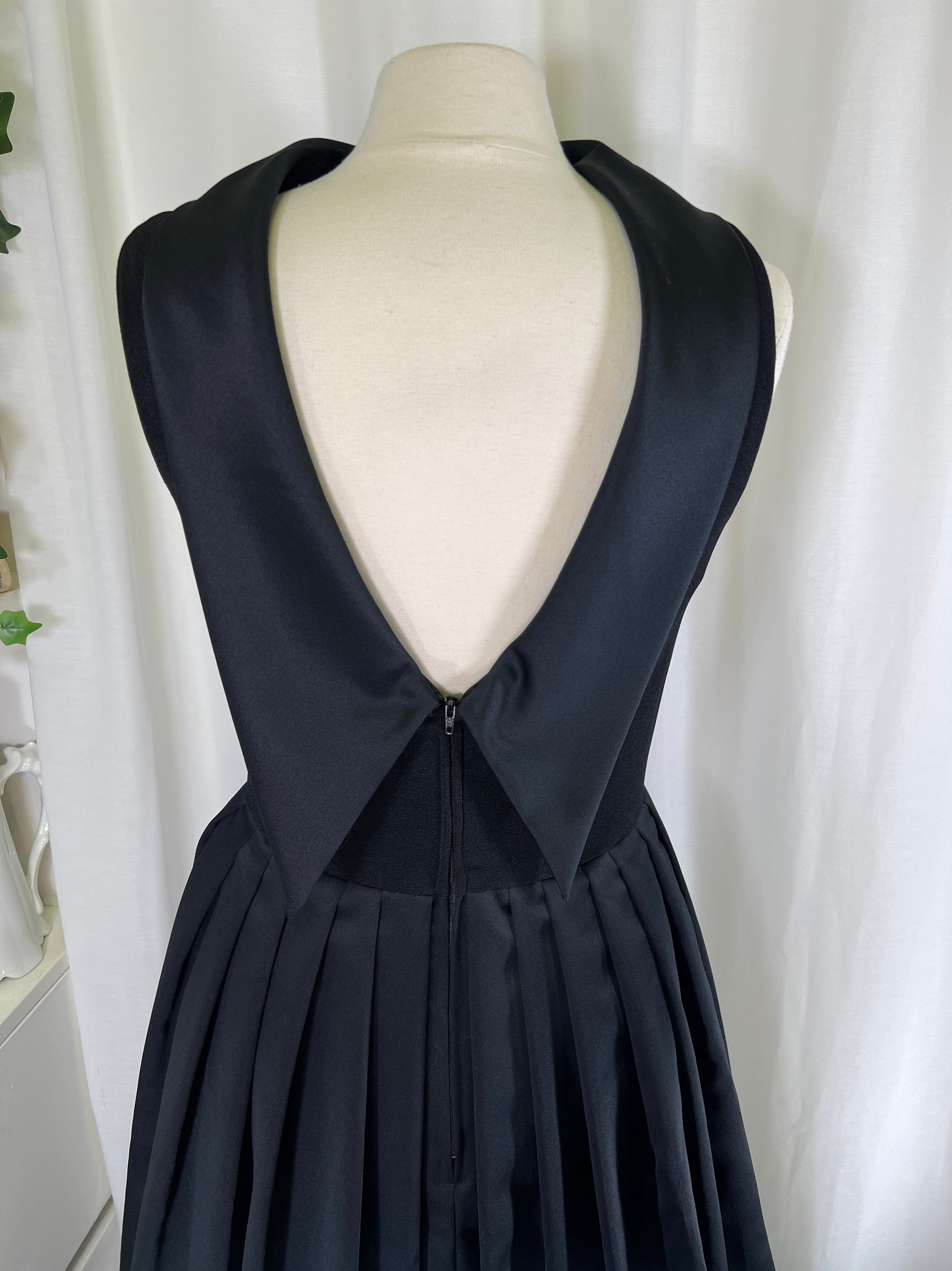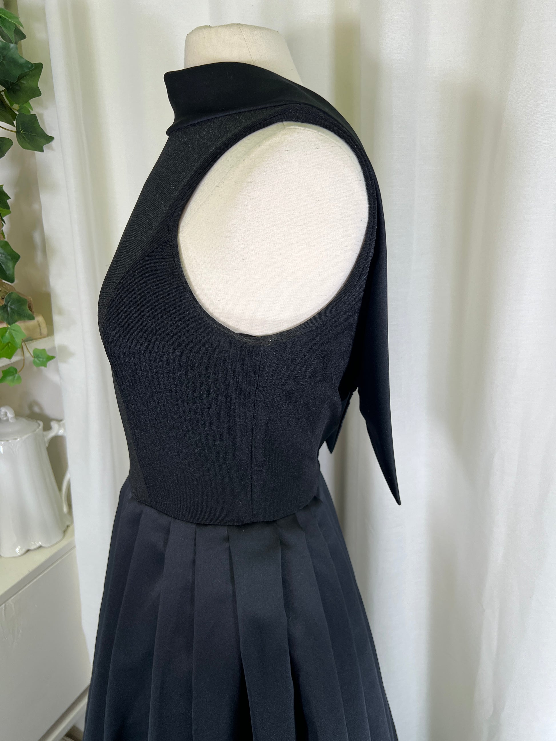 80s Splendiferous Black High Neck Low Back Pleated Maxi Gown