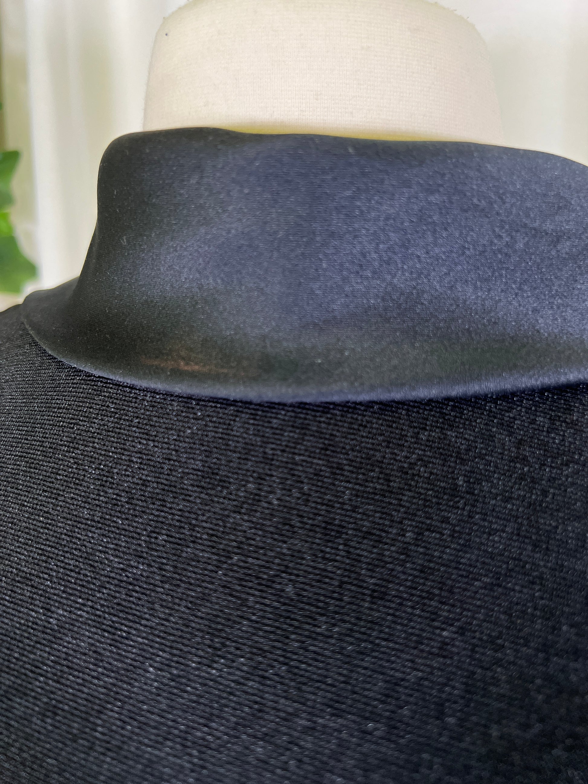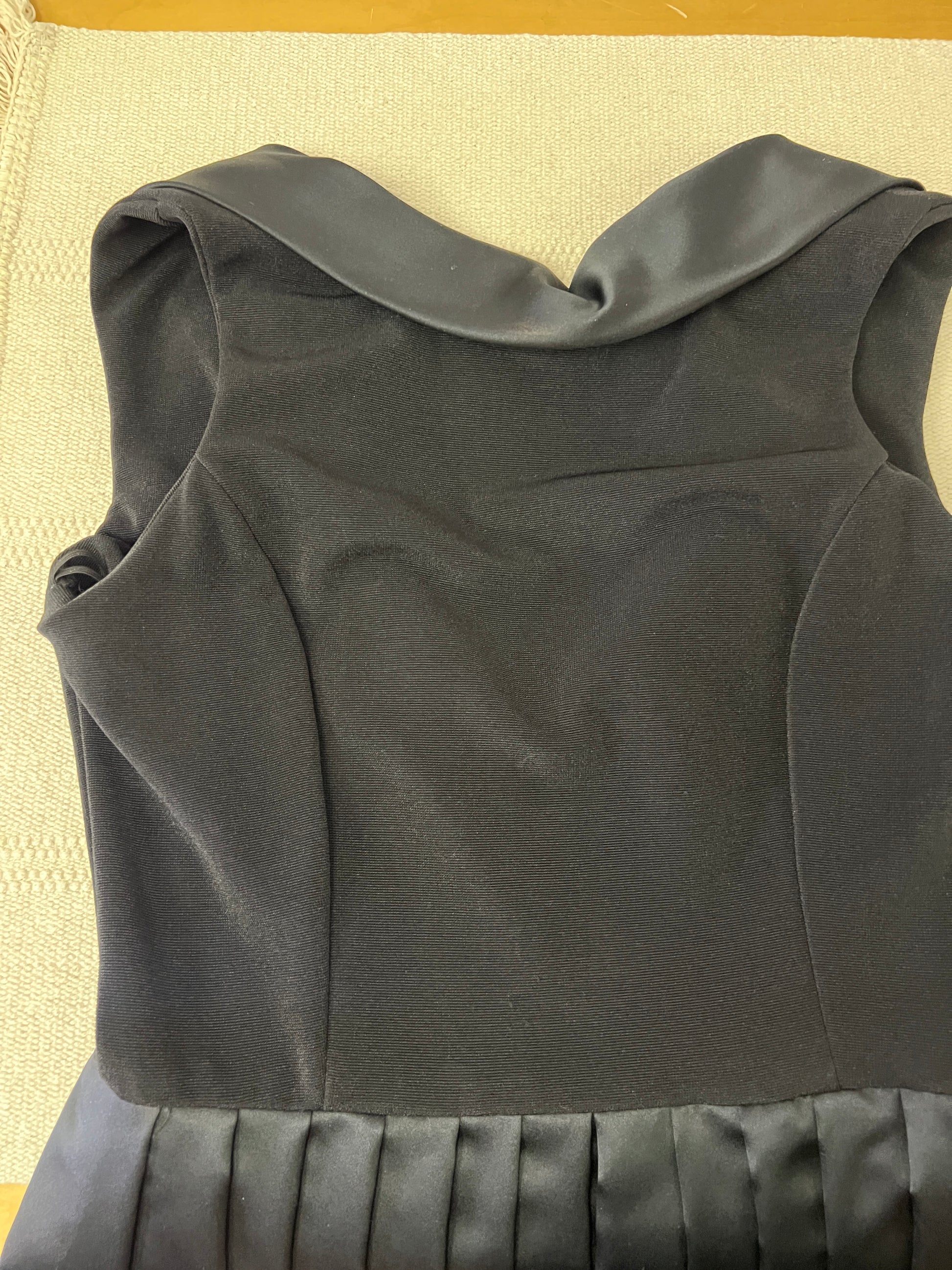 There’s no need to fear a Black Tie Dresscode with this gown as your plus one! The satin edge goes around the neck high for buisness in the front but the low back brings the party! The details are so stunning in person! There’s a few very small irregularities in the top, but they are not noticeable while wearing.